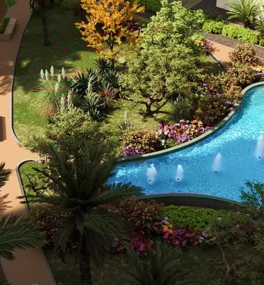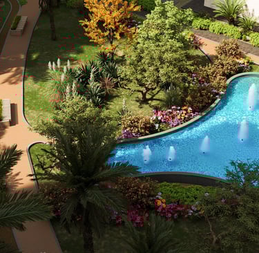 Enjoy expansive green areas that promote relaxation and a vibrant community atmosphere for residents.